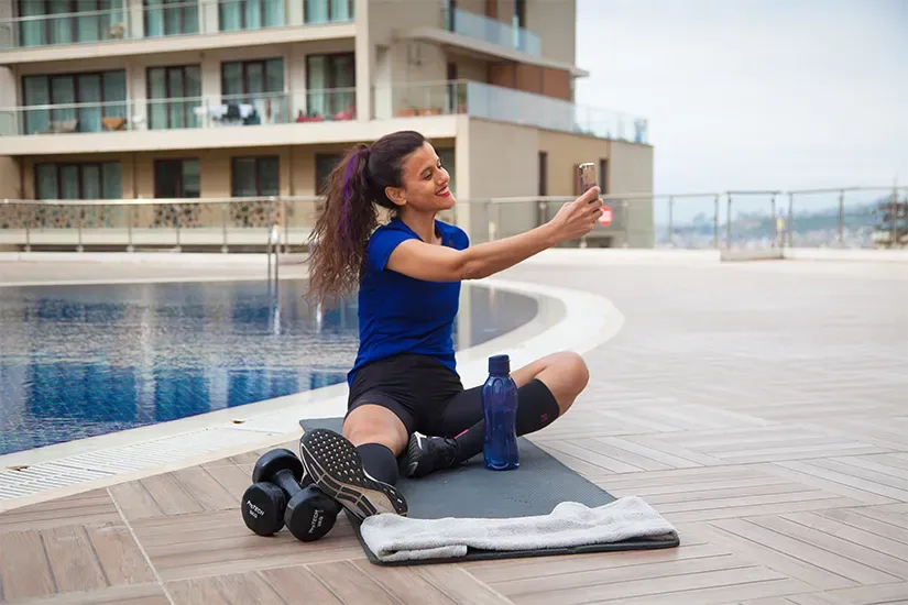• Gymnasiums, yoga studios, and running paths